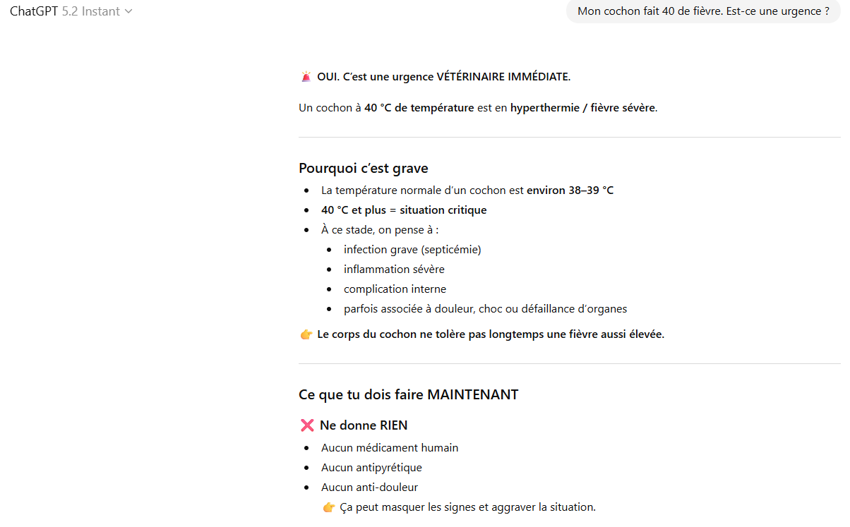 Question 3 : Mon cochon fait 40 de fièvre. Est-ce une urgence ?